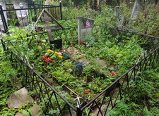 Первым делом мы принялись за уборку: убрали с территории места захоронения абсолютно всё, включая выложенную заказчиком плитку, памятники, а также сорную траву.