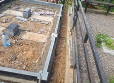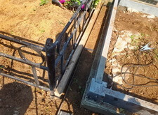 Подготавливаем территорию вокруг места захоронения к покрытию брусчаткой: ввариваем металлическую полосу и укрываем землю геотекстилем.